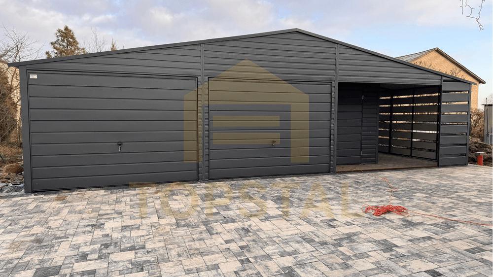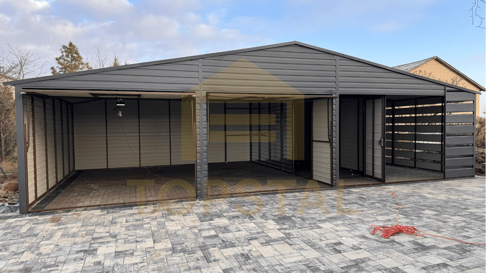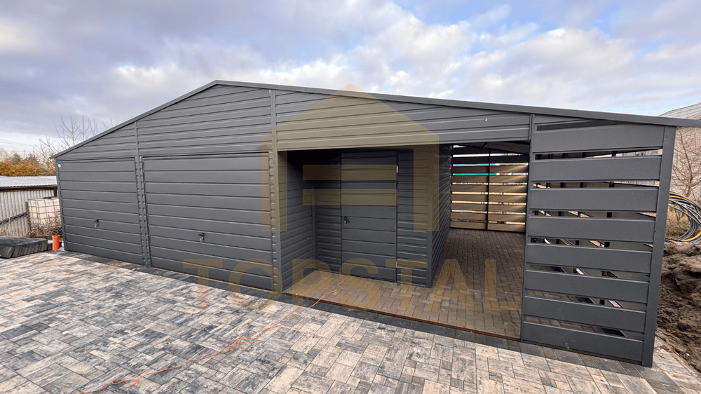 Garaż blaszany 10x6 DWUSPAD Z POMIESZCZENIEM GOSPODARCZYM+WIATA