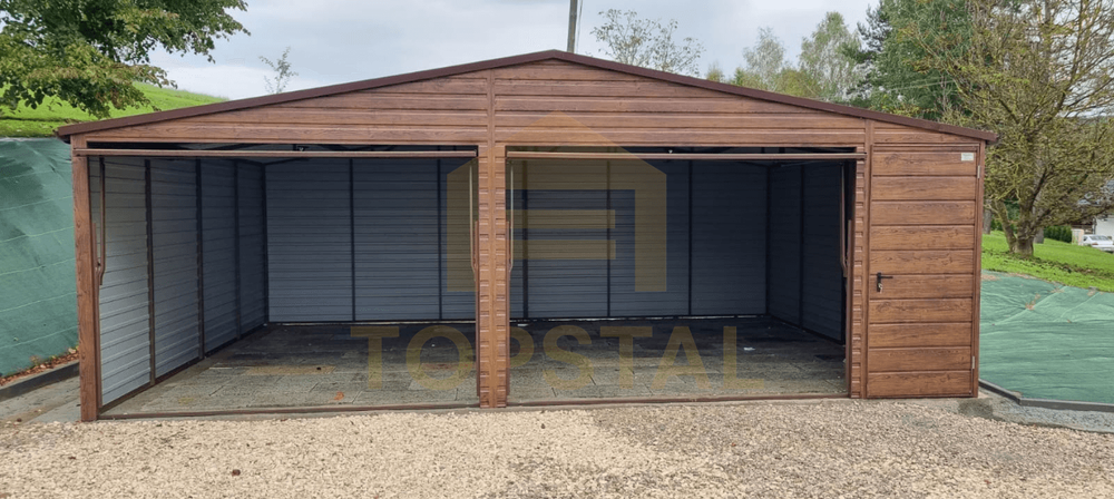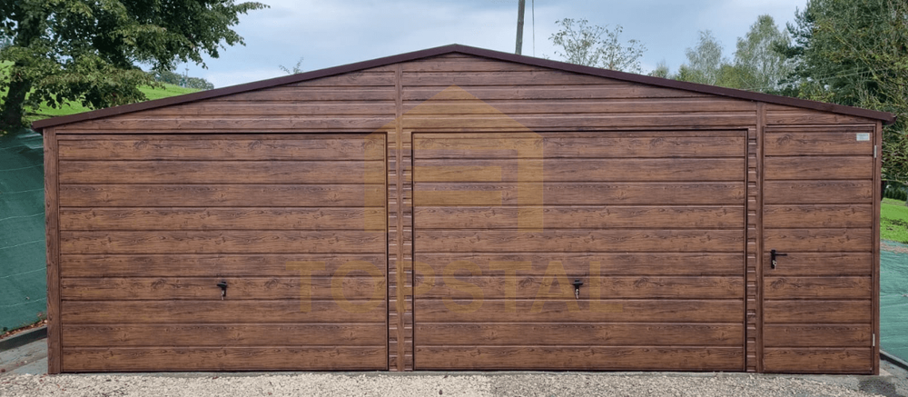 Garaż blaszany 7x5 dwuspadowy CIEMNY ORZECH