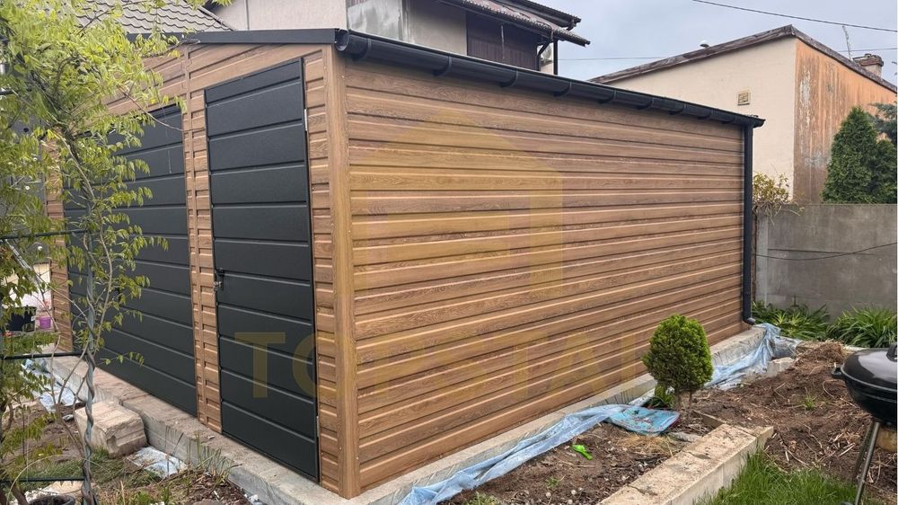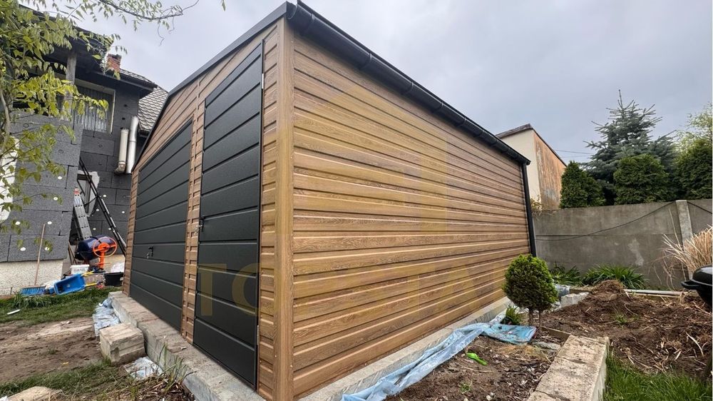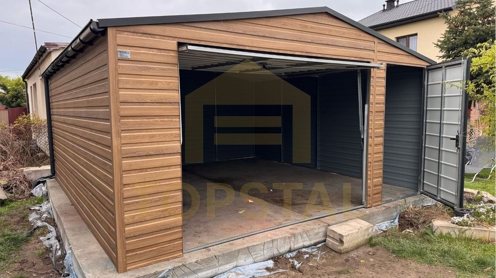 Garaż blaszany 5x5 DWUSPAD DREWNOPODOBNY
