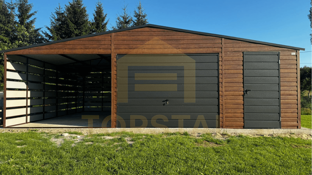 Wybierając garaże blaszane od TOPSTAL, stawiasz na jakość i profesjonalizm. Mamy wieloletnie doświadczenie w produkcji garaży blaszanych, a każde zamówienie realizujemy z najwyższą starannością. W całej branży jesteśmy znani ze swojej fachowości, a na przykład nasz garaż blaszany drewnopodobny cieszy się ogromnym powodzeniem. Nasze garaże charakteryzują się dużą odpornością na warunki atmosferyczne oraz solidną konstrukcją, co gwarantuje ich długowieczność. W ofercie mamy szeroki wybór kolorów z palety RAL oraz możliwość zastosowania blachy o wyglądzie drewna. Taka opcja pozwala na dopasowanie garażu do indywidualnych preferencji estetycznych klienta. Zamawiający z góry wie, jak będzie wyglądać wybrany rodzaj konstrukcji. Zanim zdecydujesz się zamówić garaże na wymiar blaszane, możesz bowiem sprawdzić wygląd produktu z wykorzystaniem wizualizacji 3D. W TOPSTAL rozumiemy, że każdy klient ma unikalne potrzeby, dlatego oferujemy personalizację garaży blaszanych na zamówienie. Niezależnie od tego, czy potrzebujesz standardowego garażu na samochód, czy też nietypowego rozwiązania na przechowywanie sprzętu, możemy dostosować naszą ofertę do Twoich wymagań. Nasza firma dba o najwyższą jakość obsługi klienta, oferując darmowe konsultacje i doradztwo techniczne. Zapewniamy również szybki czas realizacji zamówienia oraz korzystne warunki płatności. Bez względu zatem na to, czy interesuje Cię garaż złoty dąb, czy też szary, jakie wymiary mają mieć konstrukcje stalowe oraz jakie ma być zastosowanie garażu przelotowego, zapłacisz u nas rozsądne pieniądze. TOPSTAL to gwarancja jakości, trwałości i estetyki. Zapewniamy Ci więc wytrzymałe miejsce do przechowywania samochodu, które wykonujemy zgodnie ze wszystkimi preferencjami klienta. Oferta TOPSTAL nastawiona jest bowiem na odpowiedź na każde zapytanie oraz wytyczną dotyczącą usługi. Realizujemy nawet najbardziej nietypowe garaże blaszane. Wymiary, elementy dodatkowe i ich rodzaj (na przykład sposób wykonania klapy okiennej) możesz ustalić z nami indywidualnie. Zapraszamy do zapoznania się z naszą ofertą i skorzystania z darmowej wyceny! Dajemy Ci możliwość stworzenia garażu idealnie dopasowanego do Twoich potrzeb, zapewniając jednocześnie fachowe doradztwo i kompleksową obsługę. Argumentem, który przemawia za wybraniem naszej oferty, są także doskonałe opinie naszych klientów. Wielu z nich podkreśla, z jak wysoką jakością garażu przyszło im mieć do czynienia. Na stronie naszej firmy w Mapach Google - na firmowej wizytówce możliwe jest zapoznanie się z recenzjami na temat naszych produktów. Atutem naszej oferty jest również możliwość skonsultowania z nami decyzji zakupowej. Interesuje Cię na przykład garaż orzech i otwór okienny w nietypowym miejscu i masz dodatkowe pytania? Chcesz dowiedzieć się więcej na temat wykorzystywanych profili? A może interesuje Cię filc antykondensacyjny i chcesz dowiedzieć się więcej o tym rozwiązaniu? Standardowo udzielamy wszystkim naszym klientom szczegółowych informacji i nie musisz się krępować, dzwoniąc do nas i pytając o szczegóły konstrukcji. Jeżeli chcesz wiedzieć, w jaki sposób zakotwić garaż albo poradzić się na przykład, czy lepiej wybrać garaż ciemny orzech, czy grafit, także skontaktuj się z nami. Jesteśmy dostępni w poniedziałki w godzinach 8-18 oraz w soboty w godzinach 9-14. Skorzystaj zatem z naszej oferty już dziś! Nie czekaj, zainwestuj w garaż blaszany na wymiar od TOPSTAL i ciesz się przestrzenią, która sprosta wszystkim Twoim wymaganiom!