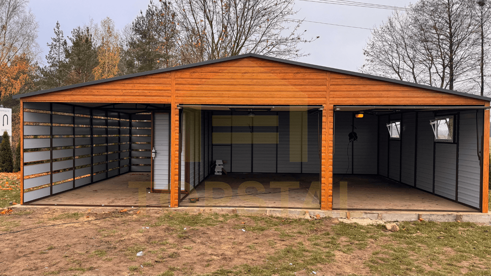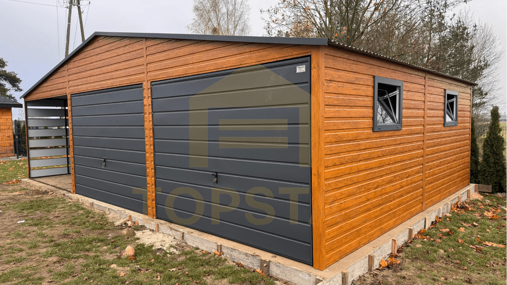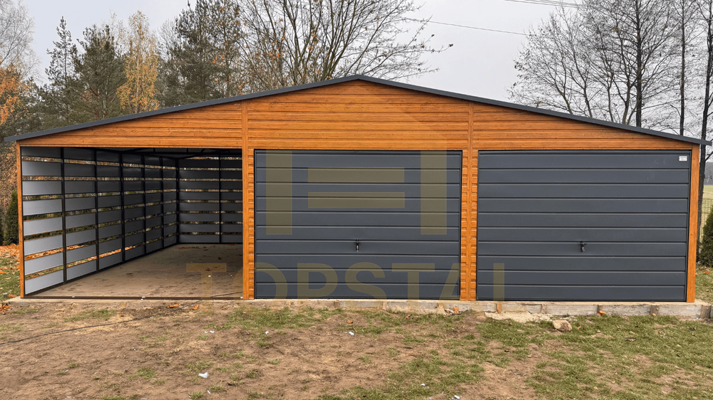 Wybierając garaże blaszane od TOPSTAL, stawiasz na jakość i profesjonalizm. Mamy wieloletnie doświadczenie w produkcji garaży blaszanych, a każde zamówienie realizujemy z najwyższą starannością. W całej branży jesteśmy znani ze swojej fachowości, a na przykład nasz garaż blaszany drewnopodobny cieszy się ogromnym powodzeniem. Nasze garaże charakteryzują się dużą odpornością na warunki atmosferyczne oraz solidną konstrukcją, co gwarantuje ich długowieczność. W ofercie mamy szeroki wybór kolorów z palety RAL oraz możliwość zastosowania blachy o wyglądzie drewna. Taka opcja pozwala na dopasowanie garażu do indywidualnych preferencji estetycznych klienta. Zamawiający z góry wie, jak będzie wyglądać wybrany rodzaj konstrukcji. Zanim zdecydujesz się zamówić garaże na wymiar blaszane, możesz bowiem sprawdzić wygląd produktu z wykorzystaniem wizualizacji 3D. W TOPSTAL rozumiemy, że każdy klient ma unikalne potrzeby, dlatego oferujemy personalizację garaży blaszanych na zamówienie. Niezależnie od tego, czy potrzebujesz standardowego garażu na samochód, czy też nietypowego rozwiązania na przechowywanie sprzętu, możemy dostosować naszą ofertę do Twoich wymagań. Nasza firma dba o najwyższą jakość obsługi klienta, oferując darmowe konsultacje i doradztwo techniczne. Zapewniamy również szybki czas realizacji zamówienia oraz korzystne warunki płatności. Bez względu zatem na to, czy interesuje Cię garaż złoty dąb, czy też szary, jakie wymiary mają mieć konstrukcje stalowe oraz jakie ma być zastosowanie garażu przelotowego, zapłacisz u nas rozsądne pieniądze. TOPSTAL to gwarancja jakości, trwałości i estetyki. Zapewniamy Ci więc wytrzymałe miejsce do przechowywania samochodu, które wykonujemy zgodnie ze wszystkimi preferencjami klienta. Oferta TOPSTAL nastawiona jest bowiem na odpowiedź na każde zapytanie oraz wytyczną dotyczącą usługi. Realizujemy nawet najbardziej nietypowe garaże blaszane. Wymiary, elementy dodatkowe i ich rodzaj (na przykład sposób wykonania klapy okiennej) możesz ustalić z nami indywidualnie. Zapraszamy do zapoznania się z naszą ofertą i skorzystania z darmowej wyceny! Dajemy Ci możliwość stworzenia garażu idealnie dopasowanego do Twoich potrzeb, zapewniając jednocześnie fachowe doradztwo i kompleksową obsługę. Argumentem, który przemawia za wybraniem naszej oferty, są także doskonałe opinie naszych klientów. Wielu z nich podkreśla, z jak wysoką jakością garażu przyszło im mieć do czynienia. Na stronie naszej firmy w Mapach Google - na firmowej wizytówce możliwe jest zapoznanie się z recenzjami na temat naszych produktów. Atutem naszej oferty jest również możliwość skonsultowania z nami decyzji zakupowej. Interesuje Cię na przykład garaż orzech i otwór okienny w nietypowym miejscu i masz dodatkowe pytania? Chcesz dowiedzieć się więcej na temat wykorzystywanych profili? A może interesuje Cię filc antykondensacyjny i chcesz dowiedzieć się więcej o tym rozwiązaniu? Standardowo udzielamy wszystkim naszym klientom szczegółowych informacji i nie musisz się krępować, dzwoniąc do nas i pytając o szczegóły konstrukcji. Jeżeli chcesz wiedzieć, w jaki sposób zakotwić garaż albo poradzić się na przykład, czy lepiej wybrać garaż ciemny orzech, czy grafit, także skontaktuj się z nami. Jesteśmy dostępni w poniedziałki w godzinach 8-18 oraz w soboty w godzinach 9-14. Skorzystaj zatem z naszej oferty już dziś! Nie czekaj, zainwestuj w garaż blaszany na wymiar od TOPSTAL i ciesz się przestrzenią, która sprosta wszystkim Twoim wymaganiom!
